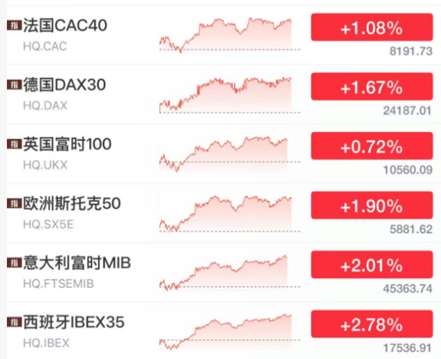 欧洲方面,亦然大举反弹。